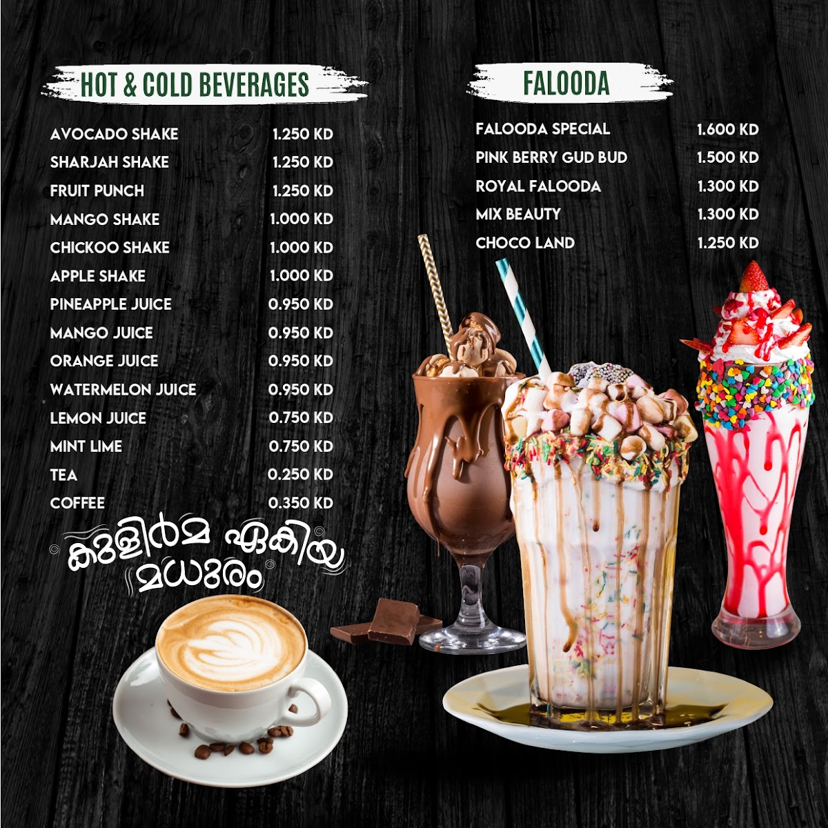 Don’t miss their tempting desserts, such as the sizzling Ice Cream Brownie or the classic Gulab Jamun. For a refreshing drink, opt for their unique Sarbathukal, a Kerala-style flavored beverage perfect for quenching your thirst.